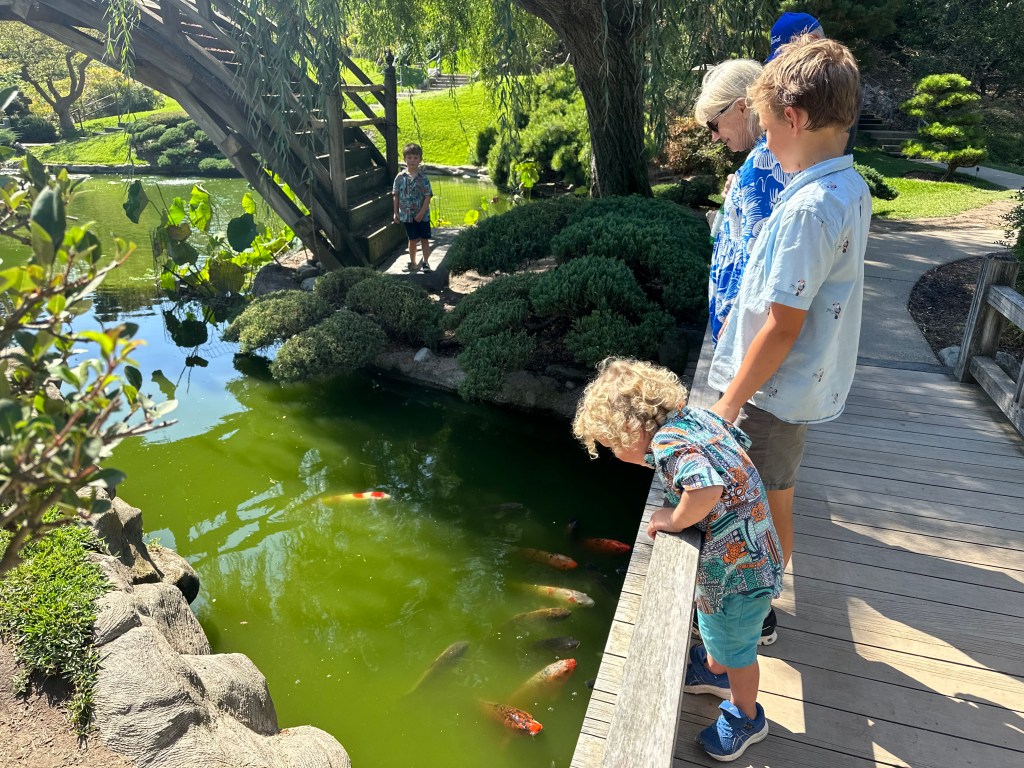 They were disappointed to learn the moon bridge was not open to pedestrians like the one in Golden Gate Park, but we admired the koi fish swimming beneath it.