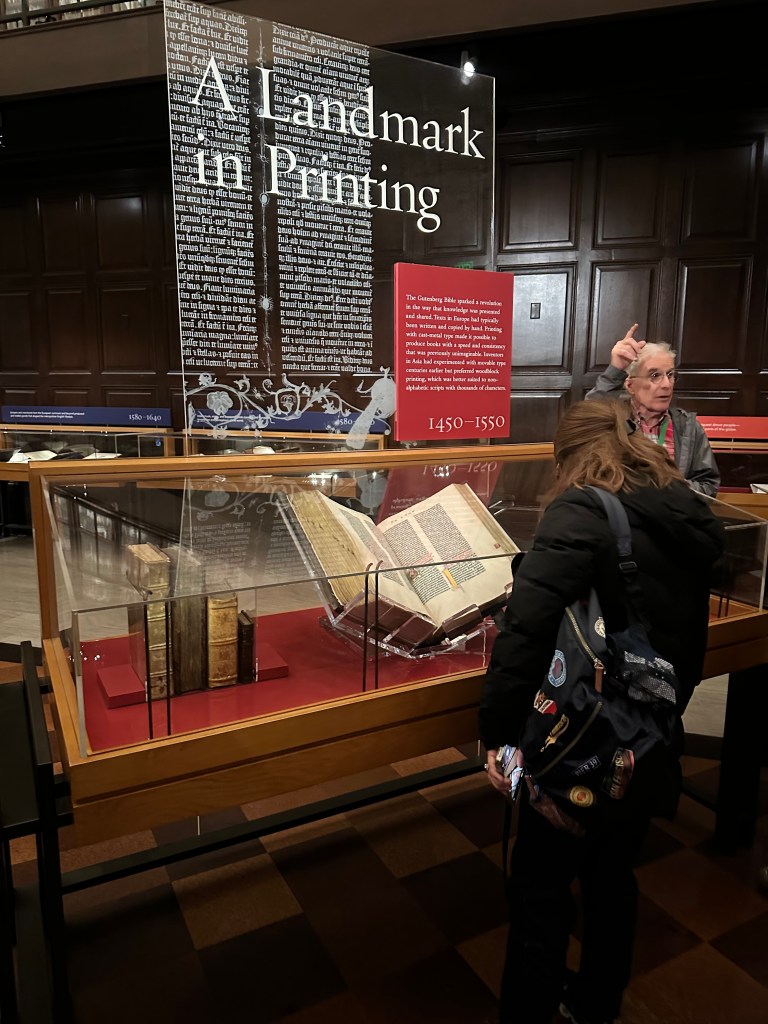The Gutenberg Bible on display is only 1 of 48 intact copies. I was surprised at how large the bible is. I appreciated being able to share an artifact that had a monumental impact on our world today with my kids.