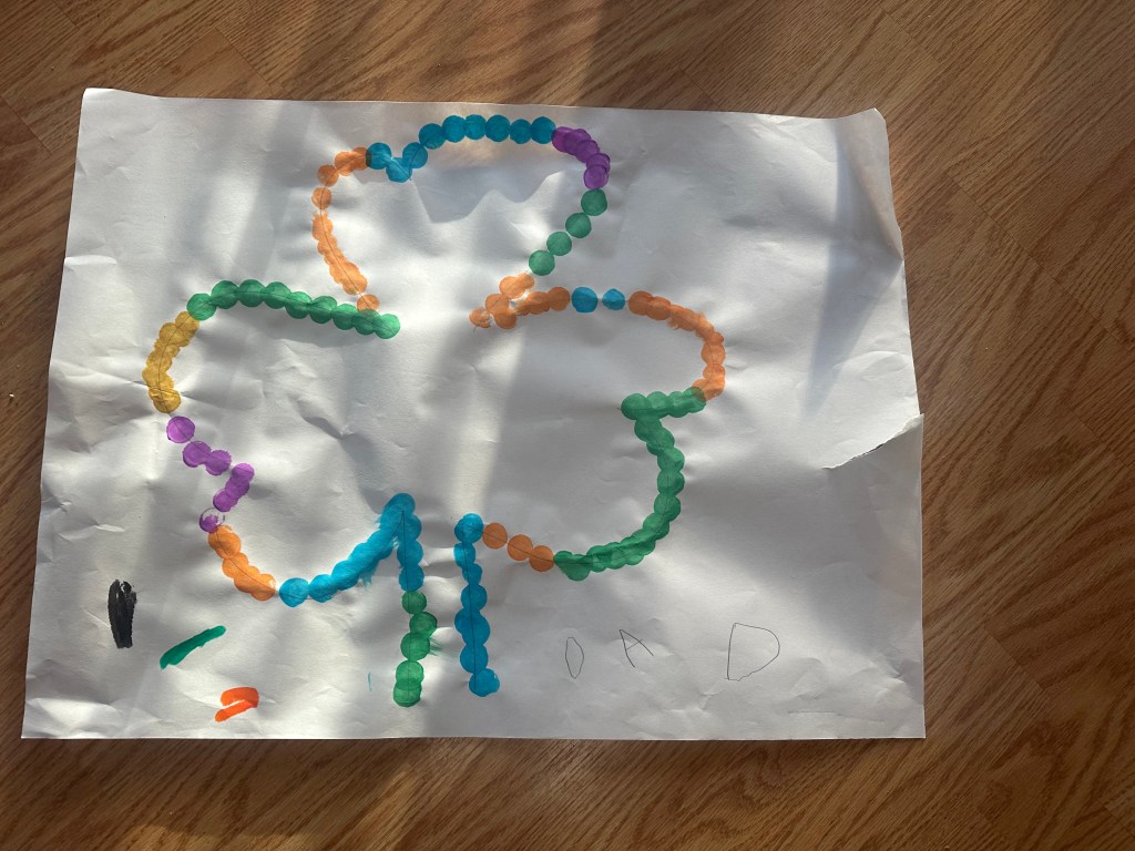 My preschoolers love St. Patrick’s Day. I will be incorporating a St. Patrick’s Day theme in this game by drawing a shamrock shape to dot out.