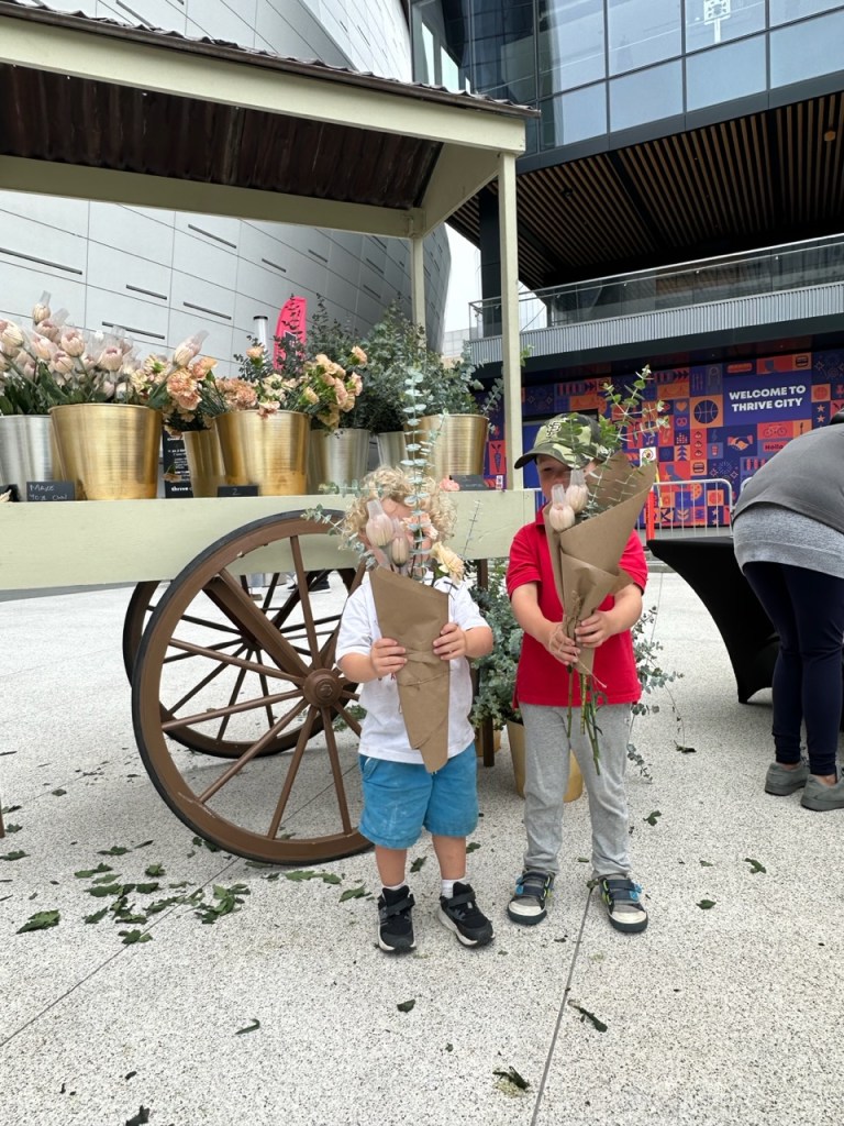 The inspiration for revisiting this timeless Montessori activity came from a Sunday Wellness Event at the Chase Center last summer, where a flower booth invited attendees to pause, breathe, and create their own floral arrangements. Watching my kids’ deep focus during this joy-filled process reminded me just how powerful and accessible this practice is—especially for children.