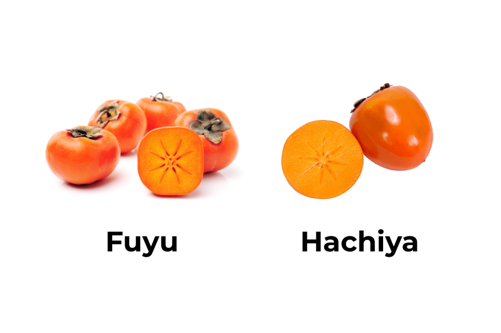 There are two widely grown persimmon varieties: Fuyu and Hachiya.