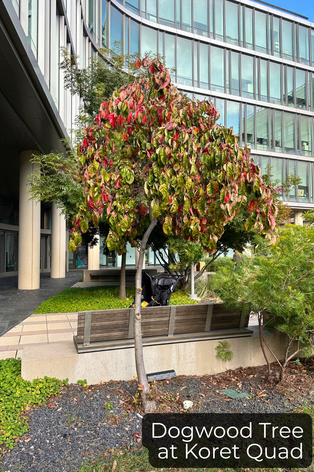 In front of the Sandler Building near Koret Quad, we found Japanese maples, dogwood, and ginkgos. By the Mission Bay hospital, we spotted even more ginkgos and maple trees transitioning from rich green to brilliant reds.