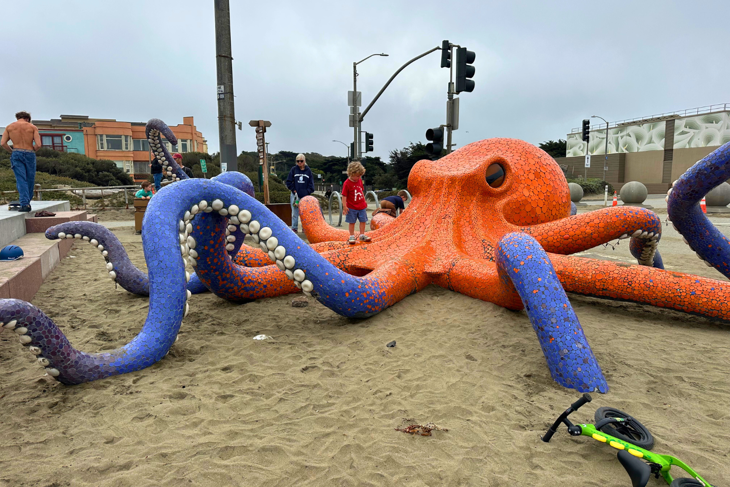 The wide path offers beautiful views of the Pacific Ocean to the west and Golden Gate Park to the north. Along the way you’ll see installations from San Francisco’s Big Art Loop, hammocks for resting, and outdoor exercise equipment that makes it easy to turn a run into a full‑body workout. It’s hard to beat the combination of beauty, safety, and space,especially when running with kids.