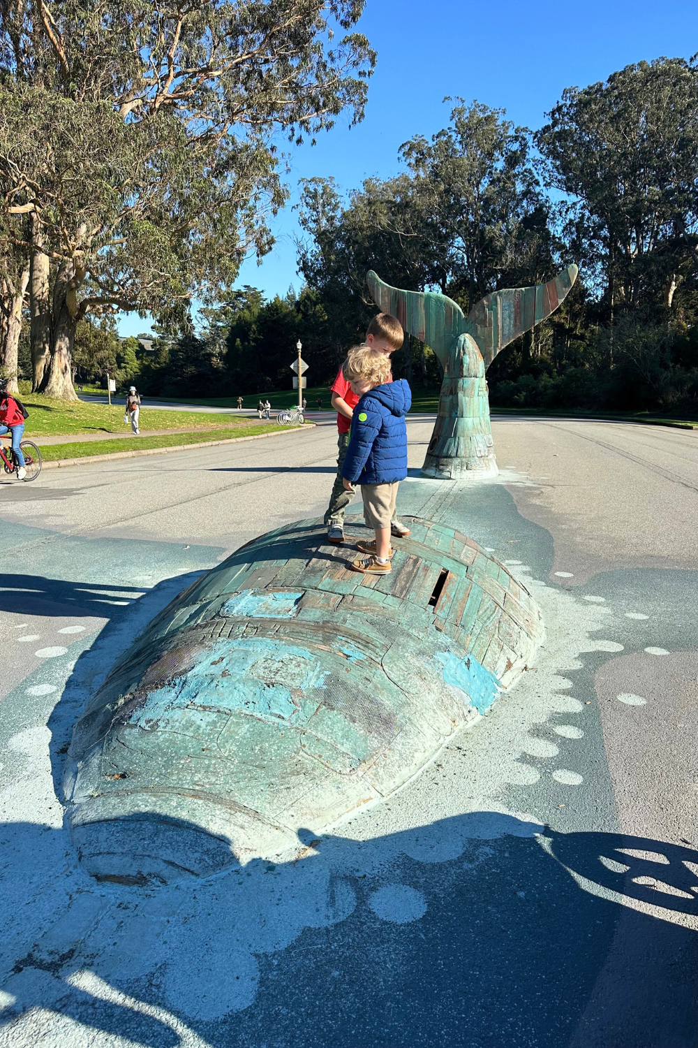 There are also art installations along the route, including Beniamino Bufano’s Penguin’s Prayer. My biggest concern here is that parts of the walking path are narrow for a double stroller and run close to Lake Merced Boulevard, which can detract from the experience.