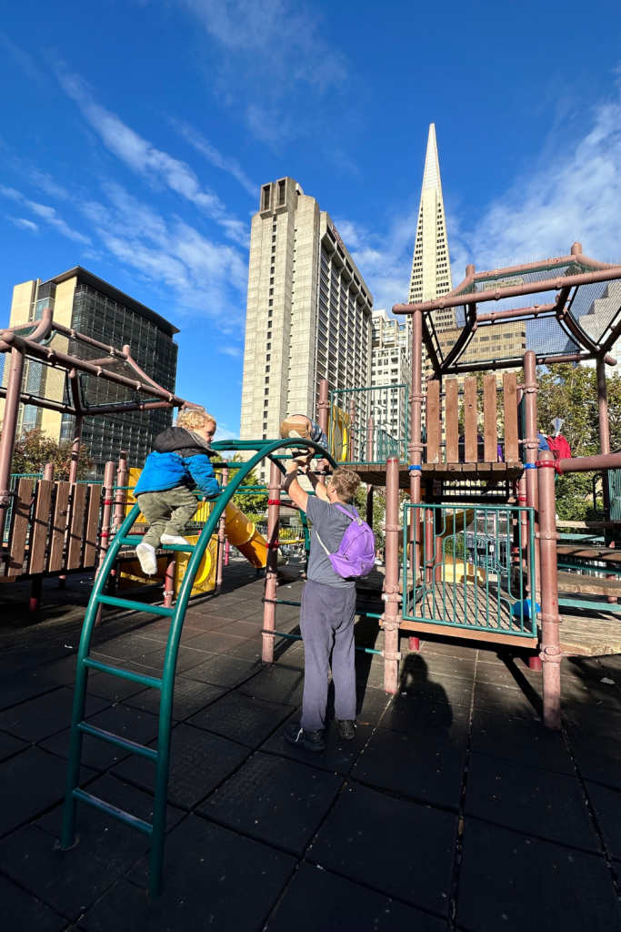 Tucked just off Sacramento Street in the heart of Chinatown, this playground is easy to miss but absolutely worth seeking out. The towering wooden dragon and soaring phoenix immediately capture your kids’ imagination.